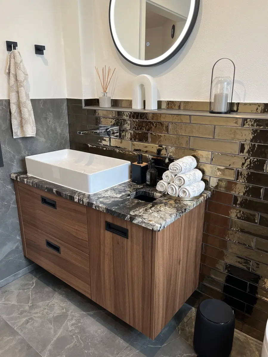 Entdecken Sie, wie unsere Fliesen in den Räumen unserer Kundinnen und Kunden wirken. Die hier gezeigten Bilder stammen aus realisierten Projekten und zeigen individuelle Wohnideen, kreative Lösungen und die Vielfalt unserer Produkte im echten Einsatz. Lassen Sie sich inspirieren und sammeln Sie Ideen für Ihr eigenes Zuhause.